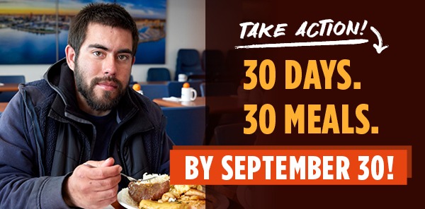 September is Hunger Action Month – and YOU can join our community in taking action for our hungry neighbors: 30 days... 30 meals... By September 30!